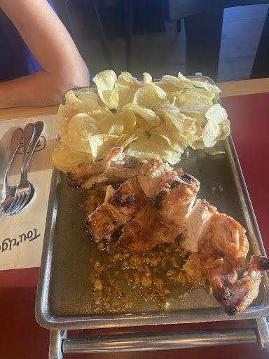 Estávamos indecisos onde jantar e escolhemos este tourigalo, infelizmente. O empregado foi zero simpático do início ao fim. Acabámos por pedir frango para três e picanha para dois. Quanto ao frango, é minúsculo e é acompanhado por batata às rodelas caseira que é boa, mas que devia acompanhar o bacalhau frito e não o frango de churrasco. O sabor do frango era bom, mas como referi antes, são frangos mínimos. Pedimos para tirar as entradas e o Sr rudemente respondeu “já tiro”, quando a comida está para chegar dizem “não querem pão? Olhem que vou tirar o pão!” num tom “de ameaça” como se fôssemos putos de 5 anos que se não comêssemos ele tirava, mas nós não queríamos mesmo, e ele lá tirou, apesar de ter vindo na fatura, como acontece sempre, esquecem-se sempre de tirar algo, a ver se passa, estejam atentos! A picanha era muito boa segundo quem a comeu, apesar de ser uma quantidade que deixa a desejar para o preço, a qualidade estava lá. Por fim pedimos sobremesa, e nada a apontar, tirando o facto que a tarte gelada de uma das pessoas devia estar congelada a -25ºC ao ponto de ao cortar até ter partido o prato, um corno era mais fácil cortar que aquela tarte. Limparam, mas não trouxeram outra porque como é claro a pessoa respondeu “deixe lá” à pergunta “quer que traga outra?”, ao ponto de uma mesa ao lado ter chamado o um empregado para contar a situação que tinham acabado de assistir para ver se esse funcionário tinha o mínimo noção que o primeiro não teve. Em suma, não foi nada barato para aquilo que nos foi servido, o restaurante é muito bonito e tem muito potencial, mas deitou a experiência totalmente a perder porque o serviço foi mesmo deplorável. Parecia que nós é que estávamos ali a cumprir uma obrigação e que nós estavam a fazer um favor. Além disto, ainda sujam as pessoas a pousar as travessas porque não sabem os mínimos de serviço à mesa, e não sabem que servir as pessoas é pelo lado direito das mesmas, a não ser que sirvam ao prato e aí sim pode-se servir pela esquerda. É travessas por cima das pessoas a pousar e a levantar com molho a derramar, levam guardanapos de pessoas que ainda estão a comer, etc. Não tenho por hábito desancar completamente um estabelecimento, porque sei que existe pessoas que podem precisar do seu negócio para sobreviver, mas num caso como este, de uma rede de restaurantes com tantos anos de experiência, é inadmissível passarmos pelo que passamos. Ah, no fim ainda cobraram a tarte gelada do acidente que falei acima. Porque coitados, eles iam fechar portas e falir se não cobrassem uma sobremesa que gerou um acidente pela péssima forma como foi servida. Deve ser por isso que também servem quantidades ridículas de pequenas. Arroz para duas pessoas dava para uma e mal, o frango se fosse desossado, numa trinca comia meio frango, duas ia o frango todo. Péssimo, a...