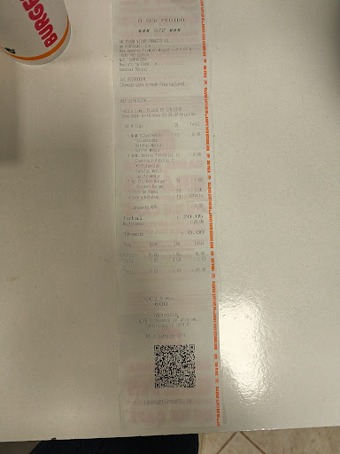 Read moreA pior experiência de visita a um Burger King. Fizemos o pedido nos terminais à entrada e ainda bem que estávamos num estabelecimento de "fast food" porque esperamos quase 40min para que o nosso pedido fosse entregue. Pedimos as duas versões do Brutal Bacon, bovino e frango, e quando abrimos as embalagens verificamos que o pão não tem bacon no topo, tal como a indicação tanto na publicidade como no descritivo do menu. Abrimos os hambúrgueres para verificar o conteúdo e em ambos os casos tínhamos apenas duas mini fatias de bacon. Ora um hambúrguer chamado Brutal Bacon só trás este bacon? Fomos devolver os hambúrgueres ao balcão, e só nesse momento nos avisaram que o pão de bacon tinha acabado. E que, depois de alguma exaltação, nos disseram que de facto estava também em falta os pedacinhos de bacon que complementam as duas fatias. Tivemos de voltar a esperar para finalmente comer um hambúrguer, quase uma hora depois de ter feito o pedido. Ainda bem que fomos a um estabelecimento...