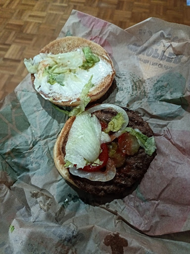 É provavelmente o pior Burger King que conheço. Atendimento fraquissimo. 2 últimas visitas: na primeira pedi Menu Doble Crispy, vinha só um hambúrguer. Tive que regressar ao restaurante. Proposeram aguardar que fosse feito o segundo hambúrguer para colocar na sande entretanto fria. Experiência de hoje: dois hambúrgueres, um em Menu. Menu Rodeo Grande com papel envolvente gelado. Ao abrir percebi porquê, todos os ingredientes completamente gelados, foi tirar do frio, tentar aquecer e entregar. Queijo totalmente frio e sem qualquer vestígio de ter estado alguma vez em contacto com calor, porque aí estaria frio mas derretido. Tomate, cebola, carne totalmente rijos e gelados e pelo mesmo motivo. Vergonhoso como alguém entrega um produto assim ao cliente. Restaurante a não visitar, de um cliente com 2 a 3...