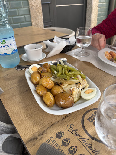 Read moreWatch out for paying extra for stuff you don't particularly want! The food was decent enough - grilled Bream and Sardines with a basic salad and some very oily potatoes. However when we sat down, we were given bread (with a one-person plastic pot of naff Primula style cheese, and a one-person plastic pot of butter), some olives and three bacalhau fritters, which was all tasty enough and we understood that we'd pay for it as cover charges. What really took the proverbial though, was charging a euro each for the tiny amount of butter and of naff processed cheese spread. The bread was over 2€ and was very average. The cover charge items alone came to more than 10€ which is a rip off. I wish we had read the reviews before...
