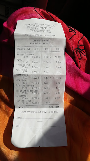 Read moreO churrasco não tem qualidade nenhuma,como moro mesmo ao lado fui mais do que uma vez experimentar e comprei costelas e frango e as costelas muito duras e o frango cru por dentro.Dono completamente perdido e arrogante sem ter noção do que é ter um estabelecimento.Demasiado tempo á espera para ser atendido e servido. Assador sem muita experiência de grelhador. Muito fraco!!!!! Não...