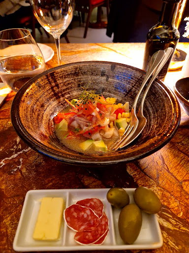 Decent food, rather average for the price, ceviche was just fish doused in most acidic of lemon juices, no balance, no seasoning - terrible to eat. Prawns in flaked almonds, no seasoning, bland, but at least crunchy, supermarket bought sweet chilli sauce with it takes the prize. My main of octopus, octopus super soft, well cooked, spinach bland, no seasoning with old oil taste. Potatoes just boiled not even tossed in anything or herbed or even salted. But it is the service that I found appalling. Firstly, they brought all 3 dishes we used as starters at once, and then wouldn't let us eat in peace or finish it, haunting us to take the plates away though we were still clearly eating. Then, they dumped mains on the table and again haunted us for the plates. We found it so bizarre. They had time to haunt us for the plates but not to refill our waters, we had to ask on several ocassions, never drank our full bottle. Wine - same story, not refilled had to ask every time. It wouldn't be a problem, I am happy to refill my own, but they carry bottles away so one can't refill when they fail to do it. Then they came and dumped a bill on our table whilst we were still eating dessert and clearly not finished our bottle of wine. I asked what's the rush, apparently they need the table back, at 10:30?! I made normal booking for 19:45, we were on time, at no time was it mentioned that we have time limitation. We felt kicked out, even though we still had our glasses half full with wine in our bottle not done. They didn't even have the decency to offer to take our wine glasses to the bar. We saw the bar was half empty, as were the lounges, and ordered a drink at the bar instead, barman super friendly told us to sit wherever we want. Definitely will not be back, despite the amazing location, fab views (if you are anywhere near the windows), stunning interiors, and beautiful people in them. I have tolld my whole team not to bother with any corporate events there as funnily enough, at the start we told the front of house we are scouting for corporate events locations; how terrible at sales and tone deaf does one have to be to then treat paying customers with a reservation the...