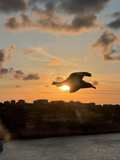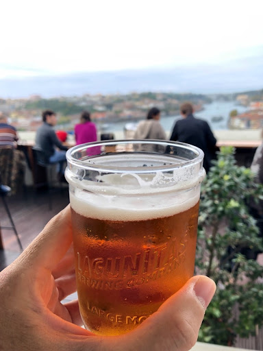We came at sunset and they were blasting house music (which I love) but it made it hard to hear people at my own table because the entire place is parallel flat surfaces - plus the typical crowd is in their 50s and none of them seemed to like it. That's a shame because the location is perfect. It overlooks downtown Porto and would be the perfect place for a quiet evening nightcap before heading back down into town.