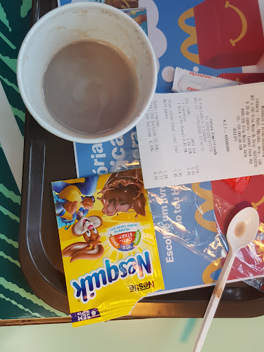 Wanted a cup of hot chocolate, they only had something called Chocolate Milk, which I took, so they gave me a cup of milk and a sachet of Nesquik. Nesquik doesn't qualify as chocolate, it contains only 22% of cocoa and an insane amount of sugar: 20,5 gram. Should I even mention that it tastes nothing...