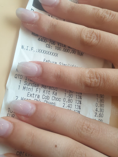 Sinceramente, o Mc Donald's foi sempre a minha escolha numero 1 de restaurantes fast food, sempre comi em vários Mc Donald's e nunca reclamei da comida, do serviço nem nada. Mas hoje mudei a minha perspectiva sobre eles. Recentemente eles tem sido mais poupadores, preocupam-se mais na rapidez do que na qualidade, no meu caso, pedi um simples flurry twix, mas além de vir com pouco caramelo (é razoável mas ainda assim mau) veio com um pedaço de plástico azul! Além disso disso pedi um sunday de maracuja para a minha prima, que estava bom, mas pedi um mc flurry de kitkat com extra chocolate só que envez de extra chocolate veio molho de maracuja!