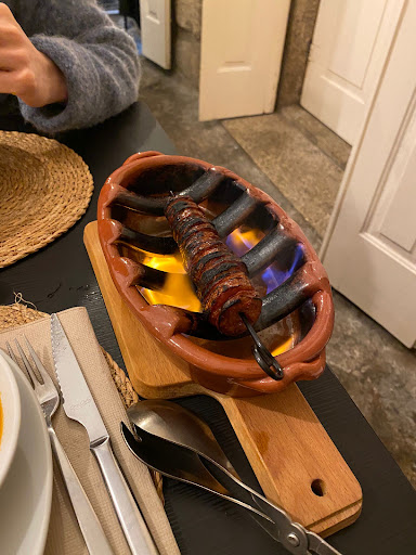 The French group ordered chorizo flambé, which was fun to watch as it burned at their table for 10 minutes! The lady who took our orders and served us was such a nice, kind, smiling lady, who spoke excellent English and also tried French, though she said English was easier. She made it a wonderful experience.