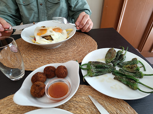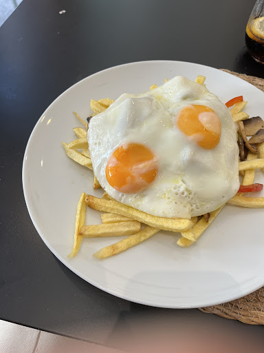 A few days later we returned as they opened, at 12.00. It filled up again by 12.40. We tried the chips with eggs, peppers and mushrooms (good) and a plate of padron peppers to share but I ate them all (awesome), meatballs (nice) and chips. Their chips are homemade, fried in olive oil - delicious. We caved in and had dessert again. Still delicious! With 2 beers and a coffee, about €35 again. We had a lovely chat with the waitress, again very smiley and kind! These two meals were the most enjoyable we've had in Porto this week. Excellent food, good value, lovely staff, relaxed and no hassling to leave! We so enjoyed visiting here - thank you so much to the ladies who run the restaurant! Excellent...
