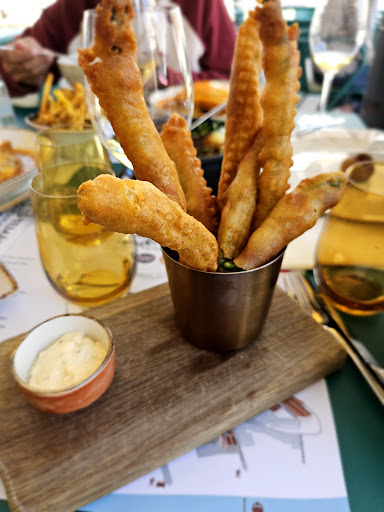 Fantastic restaurant in the WOW district. We had wanted to go to Taylor's but we didn't have a reservation, so rather than waiting the hostess recommended we walk down the street to T&C. We are so happy we did. My friends each had the traditional Portuguese sandwich, the Franceshina. One standard with meat and the other vegan with tofu and eggplant. Both were equally delicious. I had 2 starters. The cod cakes and the tempura battered green beans. Both were beyond! We sat on the patio. The ambience was perfect for a midday meal. The somallier Gustavo was our favorite part. First he recommended a wonderful Portuguese white wine to go with our meal. Then we watched him decant a bottle of red wine for another table beautifully and then explained the art of decanting to us. The most fabulous was when we told him we wanted to have some port after the meal and he turned it into a port tasting and ordered us fantastic desserts to go with the 4 different ports he introduced us to. An amazing custard that can't even be explained and a cheese, apricot jam and walnut plate. He then took his time to really give us a lesson on port in general and the 4 specific ones he was having us taste. We were so happy to have happened...