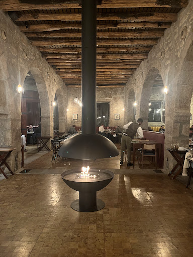 The interior deserves kudos on its own. It’s stone and wood, some tables are placed within the wine barrels - such a smart way. There is a small fireplace in the middle of the room. Overall it’s very atmospheric and chill.