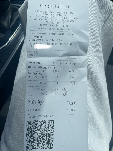 Read moreNo dia 17 de agosto, chegámos ao Snopão pelas 10h25. Apesar de a padaria estar bastante movimentada, havia mesas livres, sobretudo na esplanada, onde nos sentámos.