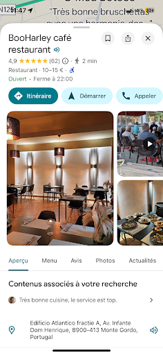 Read moreWir sind nun mehr als 10 Tage in Monte Gordo und waren täglich, auf Empfehlung von anderen Urlaubern, in den verschiedensten Restaurants. Aber das was uns hier heute geboten wurde ist mehr als 5 Sterne wert. Super freundliche Bedienung, sauberer Tisch, polierte Gläser ohne auch nur eine Spur von Kalkrändern. Ordentliches Besteck, ebenfalls pickobello. Getränketemperatur dem momentanen Klima angepasst. UND DAS ESSEN, ein Schweinefilet, ca 2 cm dick und zart, das man kaum ein Messer zum schneiden braucht, Salat, der nicht seit Tagen im Lager liegt. Nudeln, die auf den Punkt serviert werden. In all meinen Rezensionen habe ich , glaube ich, noch nie ein Restaurant bewertet, aber nach so viel Enttäuschung in diesem Ort muß es einfach raus. Ich...