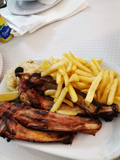 Read moreFiz uma reserva para uma mesa para 4 pessoas por telefone onde exigiram testes de covid negativos ou certificados de vacina contra a covid-19, quando chegámos ao restaurante, não nos pediram os testes nem nenhum certificado e acabámos por entrar sem mostrar nada. Assim que nos aconchegámos no local, notámos que os clientes estavam todos com os braços no ar, à espera que algum funcionário os atendesse, ou por lhes faltar algum prato, ou porque ainda ninguém se tinha preocupado em perguntar os seus pedidos. Logo, reparámos também que o número de empregados não eram suficientes e nem rápidos para atender todos os clientes. Entregaram-nos a ementa e escolhemos a comida. Perguntámos ao funcionário se uma dose de entrecosto chegava para 2 pessoas e o senhor disse que sim. Também pedimos um arroz de marisco. Depois de 1 hora de espera, a comida chegou. Descobrimos que a dose era mínima, com apenas 4 ossos de entrecosto, um pedaço mínimo de arroz e poucas batatas. O arroz de marisco tinha muito miolo de amêijoa, mas tendo em conta o preço, estava aceitável. Logo pedimos um bitoque, pois o entrecosto não chegava nem para uma adolescente. O bitoque chegou depois de mais meia hora, mas desta vez, a carne veio numa quantidade normal. Quando chegámos ao local, tínhamos pedido para guardar uma mousse de chocolate, mas no fim da refeição descobrimos que a mesma não estava em boas condições. Pedimos também um bolo de bolacha, que só sabia a manteiga. O sítio era muito barulhento mas os funcionários eram simpáticos, daí as minhas 2 estrelas. Aqui está a foto do entrecosto, para justificar a minha...