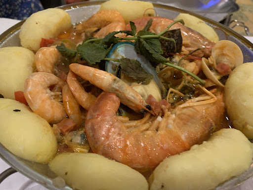 Éramos 8, pedimos 3 arçordas de marisco "SEPARADAS", como fizemos questão de sublinhar e repetir. Mais de 30 minutos depois, é-nos apresentado um tacho metade cheio, supostamente com as 3 açordas, segundo o funcionário. Relembrámo-lo que as tínhamos pedido separadas ao que o funcionário levou o tacho para trás... Após 5 minutos, trazem então 3 pequenas assadeiras com as açordas de marisco. Escusado seria de dizer que pegaram no que estava no tacho e mudaram para as assadeiras! Cada assadeira continha o máximo de 3 camarões e numa delas também tinha um mexilhão. Atónitos, perguntámos se aquelas assadeiras eram mesmo 3 doses, segundo o menu, para 2 pessoas, a custar €39. Um dos funcionários, aparentemente membro da família proprietária do restaurante, dando-nos toda a razão por estarmos a reclamar da qualidade e do preço das açordas, disse que a dona do restaurante propunha baixar o preço para, pasme-se, €19 em vez dos €39!!!, admitindo assim que tinha feito asneira e que o que nos apresentava só valia metade do preço que está no menu. Conclusão: se não tivéssemos reclamado, teríamos comido um prato a que chamaram açorda, com meia dúzia de camarões, um ovo e pão do dia anterior por €39, mas que a própria dona até achava que só valia metade do preço constante no menu. Perante tal proposta, nós contrapropusemos pagar €10, mas já sem grande vontade de ficar ali ou sequer de comer aquela coisa a que chamaram de açorda. E como a nossa contraproposta não foi aceite, acabámos por pagar o pão e as azeitonas que já tínhamos consumido e levantámo-nos... Em suma, mais uma vez, temos o comerciante português a tentar passar a perna ao turista português, a favor do turista estrangeiro. O facto de ninguém responsável se ter dignado a vir dar alguma explicação diz bem do respeito que alguns comerciantes têm em relação aos seus...