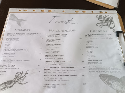 A real experience with great seafood, staff and fantastic atmosphere. We visited T’Avont Friday night. It was almost deserted when we arrived for our 7.45pm booking but was full when we left with people waiting for tables. After our excellent meal of clams and grilled seabass it was obvious why! Clams were excellent - white wine, olive oil, a little lemon and not too much garlic and a healthy portion. Grilled seabass (perfect size for two) was filleted with skill at the table and was the best we have had - as good if not better than any in London. Served with a small salad and sautéed potatoes. We had a very good and keenly priced bottle of white wine. Service was very good given how busy T’Avont was. As far as we could tell we were the only English among Portuguese families of various sizes but not a problem - all serving staff spoke flawless English - and we were made to feel very welcome. To top it all, a DJ provided music. Excluding wine €35 per head. Definitely will come back when we return to this part of...
