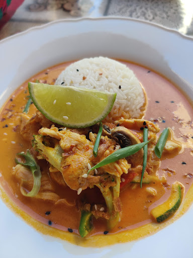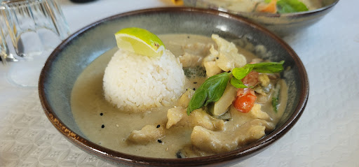 Read moreDas Essen ist sehr lecker, und hübsch dekoriert, leider ist die Portion nicht sehr groß(gelbes curry mit shrimps für 11 Euro ) , wie auch in anderen Rezensionen beschrieben. Und damit entgegen der Beschreibung der Inhaber hier, dass die portion groß wäre. Satt bin ich leider nicht. Jasmin tee aus dem beutel für 2,50 recht teuer. Milchkaffee(galao) für 2,50 ebenso vergleichsweise teuer.