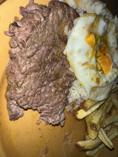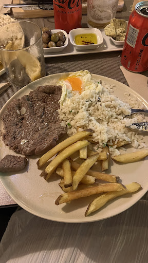 They offered tapas, but most of the options were fish-based, which didn’t suit us. We each opted for a main course instead: the steak, steak sandwich, and the steak with prawns. Unfortunately, that turned out to be a mistake. The steak in all three dishes seemed boiled rather than grilled or seared, making it bland and unappetizing. The fries were equally tasteless, and the prawns were completely overpowered by a watery, unpleasant “special sauce” that made the dish inedible.