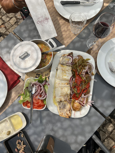 After two weeks touring Portugal, our dinner here was one of our favorite meals. While the menu could be called traditional, the restaurant was modern and the outdoor dining is unique and beautiful. You’re shaded under the boughs of grape vines which is really charming. The staff was very friendly, knowledgeable, and relaxed. Most importantly, the food was absolutely delicious and plentiful. I had the house slow-cooked beef stew (highly recommended) and my wife had the vegetable grille. We both were happy with our choices, and we loved the goat cheese app that we shared. The wine list was short, but the local 18€ red I ordered was excellent. Bonus: If you are staying close by at a local inn and you walk in, order a bottle of wine. If you can’t finish it, they will let you take the bottle back with you. Overall: Prices are extremely reasonable: dinner for two, a shared entrée (appetizer), and a bottle of moderately priced wine was just over €50. You can’t...