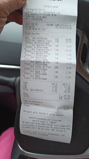 Read moreFrancesinha mediana(2.5⭐ em 3) , ingredientes sem destaque, molho típico de Vila Real, sempre muito adocicado com ketchup ou mesmo açúcar(0.5⭐ em 1). Batatas fritas(0⭐ em 1) congeladas e pré-fritas sem sabor. Serviço(0⭐ em 1) Sem grande interacção, zero follow-up durante a refeição e nem uma simples pergunta no pagamento se tinha gostado da refeição. E assim foi a minha experiência com este estabelecimento, talvez o resto da carta...