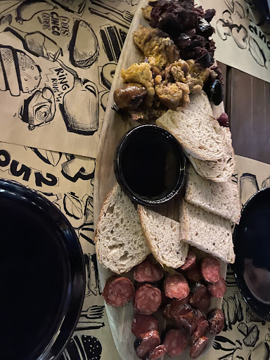 This was my first time here. The place is great, there’s a quiet and comfortable vibe, and you can find tables both inside and outside. The waiters are really nice and polite, but most important they’re professional. Specifically, the guy with dark curly hair and a moustache, he was really welcoming and fun. We tried two charcuterie boards, both were delicious. The shrimp’s rice was really good, creamy and was cooked perfectly. We also tried some smash burgers: the meat wasn’t dry and the bread was great, maybe changing something in the sauce would’ve made this dish perfect as well. Just one negative critique: the wait for the dishes, however if you spend this time having some sangria and someone to chat with, the wait isn’t even that bad. We also tried some steak, really juicy and soft! In the end, we spent 200€ for 8 people, which makes the price honest and correct based on what we had. This place is approved and i really...