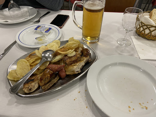 Read moreLa relación calidad-cantidad-precio es mala. Claramente el peor restaurante portugués en el que hemos comido, una excepción en un país con una gastronomía maravillosa. Pedimos bacalao y ternera asada. El primero estaba salado y la segunda seca e insípida. Nada más sentarnos, el propietario nos dejó en la mesa unos aperitivos que no habíamos pedido y se negó a responder cuánto costaban al preguntarle, hasta tres veces. Tiene muy poca visión comercial, ya que critica la gastronomía del lugar de procedencia de los clientes. Si es una broma, se trata de una muy desafortunada. Si no lo es, ha debido tener muy mala suerte en sus viajes pasados. Nos sirvió gratuitamente un vino de Oporto cortesía de la casa probablemente financiado por los 5€ que nos cobró por dos cervezas muy pequeñas y servidas calientes. La cuenta no viene desglosada en ningún sentido, aparece únicamente el concepto "2 comidas" hayas pedido lo que hayas pedido....