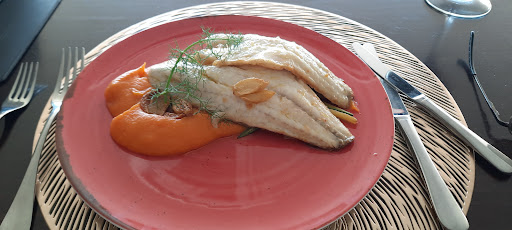 I ordered the sea bass, I'm sure I got served the river fish instead. Fish arrived nicely cooked on a bed of julienne courgette with a sweet potato mash, it was nice, but... two of the cheapest ingredients known to mankind, two glasses of house red, cost €18..