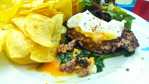 Refeição servida um pouco antes da hora de maior afluência, embora fossem já 19:20h, com apenas 2 funcionários a atender e a servir. Tive a infeliz ideia de pedir "bem passado"... Percebi que retiraram um hambúrguer de uma "caixinha" à parte e pensei se não se trataria de algo já preparado há horas e que foi colocado novamente no grelhador e requentado. Infelizmente assim foi, era borracha autêntica! O mesmo aconteceu com as batatas... duras, duras, duras! Os clientes merecem mais respeito! Podia ter reclamado? Podia, mas prefiro riscar mais um restaurante da minha lista e denunciar aqui o caso....