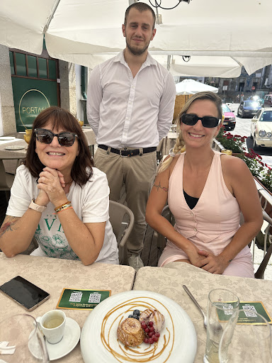Read moreWe had lunch on the terrace on a beautiful sunny day. We had the cheese and ham with homemade bread for appetizers. We then had the Arroz de carqueja (absolutely delicious), the Arroz de ervilha (beautiful delicate taste), the Bacalhau a Avozinha (with a creamy chickpea purée) and the risotto de cogumelos e gambas. Everything was well presented, hot and nicely seasoned. We have been recommended a white wine form the Dao region, that was a bit dry to my taste, but guess what? - we finished it too. It was actually a good pairing with our food. I ordered a Molotov that is not for the faint hearted so sweet it was, but homemade and very fresh. Service was extremely friendly and attentive. I highly recommend Porta Restaurante when you visit the lovely...