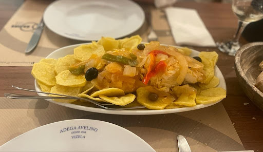 Read moreO destino não era este, mas ainda bem que calhou assim!😁 Na verdade entrei noutra casa para almoçar com a minha esposa... ainda era cedo... mas disseram que ia ter de esperar um pedaço. Se quisesse, podia ir dar uma volta... e fui. Felizmente entrei na Adega do Avelino e fui muito bem recebido. Pediram para esperar 5 minutos que iam arranjar um lugar, apesar de terem tudo reservado. E assim foi. Escolhemos Bacalhau à Avelino. Demorou um pouco, mas valeu a pena. Tudo feito na hora. Uma maravilha. Tudo excelente: entradas, prato principal, sobremesas, etc E o pessoal extremamente atencioso e simpático. Voltarei pela...