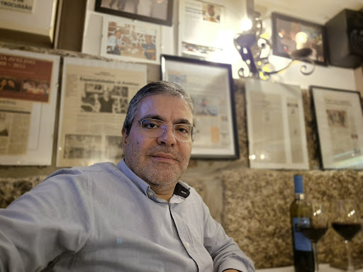 Uno de mis lugares favoritos en Portugal. El local muy acogedor, me gusta la entrada apartada de la calle y la imagen renovada que tiene ya que se trata de una"Adega" familiar en la siguen regentado desde generaciones. Eso ya apunta muy bien. Mi recomendación, quitaría la tele y pondría un poco de música ambiente. El trato muy agradable y profesional desde el principio, carta corta realizada a diario con lo que el mercado ofrece y la cocina considera: para llorar de emoción. El dueño, que atiende directamente las mesas nos aconsejó en todo momento sobre todo en cantidad. Comimos uno de los mejores bacalados que he probado nunca: muy muy grueso, desalado perfectamente, el punto perfecto: salía grandes lascas. Volví a llorar, todo ello regado con un vihno verde elaborado para la casa excepcional: fresco, brillante, un poco ácido pero afrutado con el gas justo. De postre diferentes tartas elaboradas por una pastelera del pueblo, ¿para que liarse si uno tiene una artesana pastelera con la que puede colaborar y encima, hace unos buenos postres? No me quedan lágrimas... Todo ello por menos de 40€ dos personas😢😢😢😢 Lugar muy recomendable al que volveré, y no es una amenaza. Gracias...
