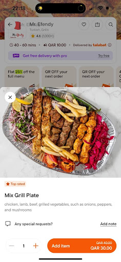 Read moreЭтот ресторан меня обманул, я заказывал еду через Талабат, на фото было много еды, граммы в меню не были указаны, но по фото было понятно количество еды, за 40QR было решено заказать на двоих. Прислали жалкое ничтожное количество еды, да ещё и положили сырую картошку фри, жесткую баранину, которую невозможно жевать. Самое главное - ресторан обманул на количество еды! Прислал совершенно другую порцию за эти деньги. Я буду добиваться полного возврата средств и напишу это везде! Вы обманываете людей....