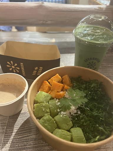 100% vegan, gluten free options, plenty of plantbased milk options and sandwiches, salads, snacks, smoothies, fresh fruits or fruit salads, cookies, cakes, chocolates and coffee and tea options. I had the Jungle Bowl and forest smoothie. It’s expensive but it filled me up and was a fresh feed between flights. Jungle bowl is quinoa, sweet potato, kale, avocado, red onion, coriander and Brazil nuts even though I could neither see nor taste the red onion and Brazil nuts I guess it was there?? Odd. Still tasty as it comes with a lime banana dressing The forest smoothie is avocado, banana, spirulina, kale, coconut water, lemon juice, dates. Overall flavours were okay, not amazing but it gave me the energy from fresh foods that I needed. Staff were very friendly and great & quick service. As an airport option this is the best at Doha Hamad...