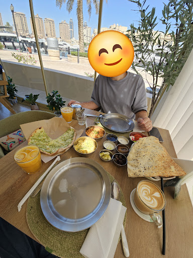 I popped into Khamira as this quaint restaurant has only been opened for about six months or so. It has beautiful, fresh ambience - it has an airy, open yet cosy feel with natural fabrics, pops of yellow and large windows to view the yachts and boats of Porto Arabia. It has excellent air-conditioning and ample outdoor seating for the Winter season. The service is friendly, professional, respectful and timely. I only had a karak and sparkling water, but will come back for a proper breakfast as the menu looks great from what I saw on other people's tables (see menu in photos section). It is good for a family breakfast or lunch, or just a quick bite to eat. They bake fresh Arabic bread on site and it is 'farm to table' thus mostly local produce. There is sufficient garage parking (also valet), so it is easily accessible. The Metro stop (a bus which will take you to Legtayfiya Metro station for free) is approximately 200 meters walk from the restaurant, so easily accessible with public...