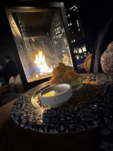 The ambiance is another highlight — the restaurant’s interior is tastefully decorated with warm lighting and elegant details that create a cozy yet sophisticated atmosphere. The outdoor area is especially impressive, offering a relaxing setting with a direct view of the Katara skyline — a perfect spot for an evening meal or a weekend dinner with family and friends.