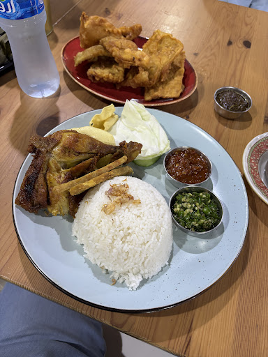 Read moreWe went rather early (for us) for dinner here today. First impressions: warm and welcoming ambience with tasteful modern decor. Our eyes were taken immediately to the one and one floor seating there and we waited for our turn to be served there. The neatness of the place and the friendliness of the staff gives off amazing vibes. We asked what the favorites were and then we ordered Bakwan Sayur (vegetable fritter), iced lemongrass drink, Laksa, Beef Randang and Nasi Goreng. The food served was tasteful and we'll proportioned. The fried onion garnish felt very close to what we are used to in Pakistani food as a garnish, and the addition of the kachumar style salad on the side. Beef Randang felt very close to beef masala curry. Our only issue was that the chicken piece with Nadi Goreng was a bit over fried which made the skin too crispy. The spicy was mild and the sweet soy sauce made the Bakwan that much more enjoyable as did the hot chili sauce. We left with full tummies, satisfied smiles and a little take away bag. Thank you for great food, we will be back for sure. (Bakwan and Laksa both had more, these pics were taken after we had...