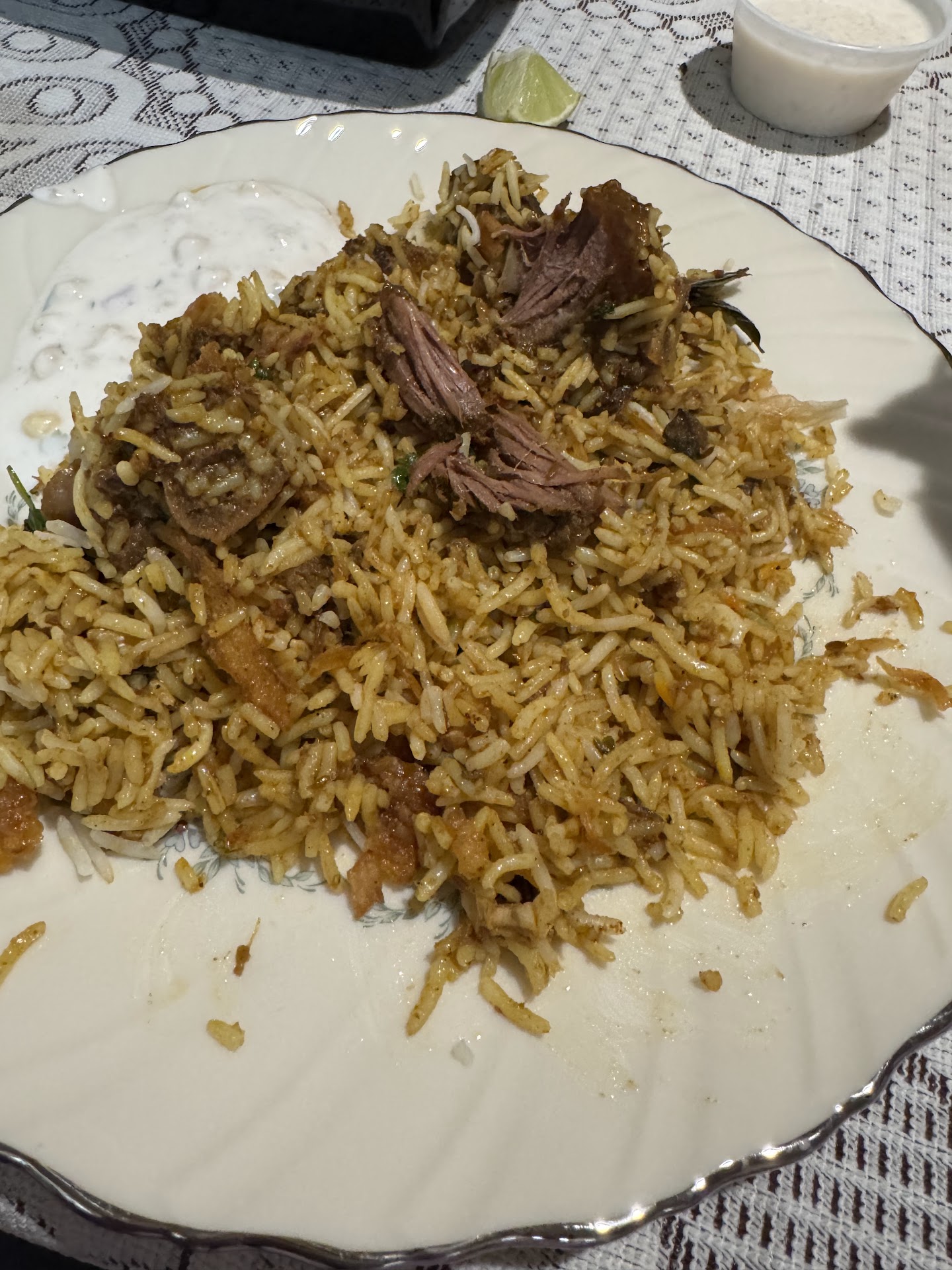 I ordered mutton Biryani. The taste was good. The mutton pieces were tender and tasted good . But for the price the wow factor was missing . They gave a complimentary kheer which tasted really bad because it had some added flavor . Please don’t change the traditional taste of kheer.