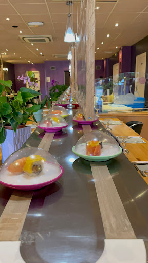 A cosy and highly recommended sushi buffet restaurant. The first thing that greeted us was their very friendly English speaking staff... Making my family feel very welcome. Ambience is nice and special. It's a conveyor belt Restaurant which is hard to find in France. The food are very fresh and made on the spot. Ingredients are fresh and the best things, desserts are included in the buffet too. Last but not least, the very thing that/ attraction that make this restaurant very different is their infamous robotic drinks server. It serves your drink and even said 'Bon...