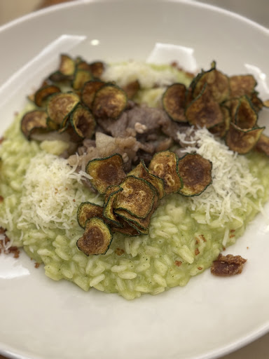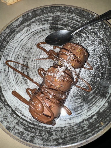 Read moreBel locale, servizio cortese e responsabile accorto e curioso dei pareri dei clienti. Sfortunatamente stando vicino alla vetrata si sentiva lo spiffero che proveniva dagli infissi e con una persona che non stava molto bene tra gli ospiti, beh ha dovuto consumare il pasto con il giaccone addosso. Si preoccupano di informarsi sulle allergie dei commensali per rendere più piacevole i pasti ma, anche se comunicate le intolleranze, non tutte possono essere rispettate, e la scelta di alimenti a disposizione sul menù non è molto lunga. Antipasto misto non esagerato, il maialino era delizioso da sciogliersi in bocca, le fritture invece erano un tripudio di olio e pepe. La cura maggiore è sulla carne rossa che ha un elenco cospicuo di tagli tra cui scegliere. Nella cottura e nella cura dei tagli si nota la passione per la brace, sfortunatamente è capitata una bistecca piena di carbone, probabilmente non era stata pulita bene la griglia, e agli altri è arrivata quasi fredda facendone perdere così il pieno sapore, al sangue ok, ma era cruda a carpaccio. Gli gnocchi erano duri e il sugo essessivamente salato. La genovese era particolare ma senza carciofi eccessovi sarebbe stata gradita di più. Gli scialatielli con il pesce è stato deludente sia di sapore che di cottura in quanto risultato crudo. La carbonara era quella che si definirebbe una carbopanna, infatti è stata lasciata nel piatto. Il dolce Raffaello era buono e bello. Rimpiango sinceramente di non aver assaggiato la pizza considerando il bruciore di stomaco di fine serata per aver mangiato poco e nulla ma tutto contenente quello che si era avvisato non si potesse mangiare.