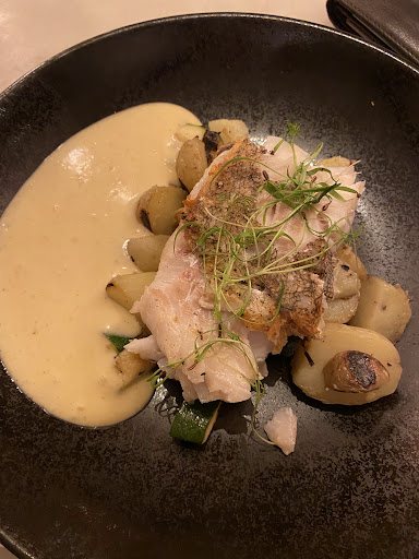 Fourthly: The service is non existent. When food arrives, there is no explanation whatsoever of what we are about to eat. They put down 3 different kind of oysters and then leave us guessing what we’re about to eat. They put down cod with a delicious sauce and different vegetables, and we have no idea what we’re putting in our mouths. We also constantly had to call waiters to our table to order more drinks. I would expect this level of service at a pub, not a restaurant marketed as fine dining.