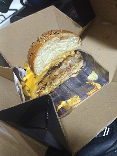 Cel de pui pot spune ca pana si in Gara Constanta unde se vand schnitzelele alea sub 10 ron, sunt mult mai gustoase si mai bune decat comanda plasata. Am primit un burger de pui lesinat, fara condimente, fara gust... Ma bucur totusi ca avea carne si nu era doar crusta precum un alt review de mai jos.
