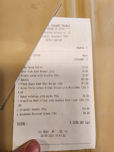 Read moreI’ll start by saying that Caju is very well located, just behind the Atheneum concert hall, which is breathtaking. The restaurant has an outdoor terrace during warmer months. The chef, Joseph is a name brand in Romania, and his menus here at Caju and just up the block, at Mace, offer delicious options with Mediterranean/Middle Eastern flair. He is often to be seen in the restaurants. He is friendly and hands on. Unfortunately, yesterday’s experience was tainted by a dictatorial waiter, far too self absorbed to notice that his dismissive manner was bothersome. He was very curt, on the brink of being rude. When asked what appetizer I should choose between three choices, he felt the need to remind me that they are very different…as if I didn’t know. I had to patiently rephrase; if he were in my seat, which would he order? He then answered, and I later thoroughly enjoyed the tortellini dish. We also ordered the mixed appetizer, and had asked if it’s shareable. He wasn’t able to simply answer, yes, it is enough for two to have and that we should order two portions of homemade bread, and then entrees. He preferred to explain that we cannot think in terms of sharing, that in this industry ‘they’ think in grams, that we should calculate in grams and how hungry we are. Really? He seemed like a head-waiter, and if that is the case, it may be that it’s gone to his head. But honestly, as a customer, I don’t care to be reminded of the restaurant’s hierarchy. I just want friendly guidance, a smile, chit-chat… So, all in all, the food, the decor, the bathrooms, every detail make the place a great choice. I like to think that my reviews are fair, and if I do criticize, I hope it brings value, and helps the management take positive measures. Oh! We also ordered dessert: the halva with passion fruit was delicious, and the creme brulee is also very good. Please talk to the waiter, and though I didn’t catch his name, I am certain the description is correct and the waiter identifiable. Talk to him. Tell him to tone it down a notch. Five stars are...