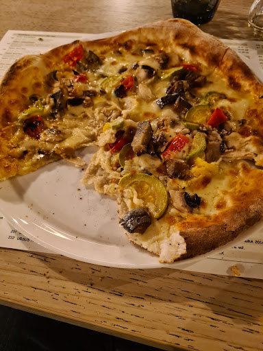 The vegetarian pizza was okay. The toppings were great, but the pizza sauce was a bit bland.