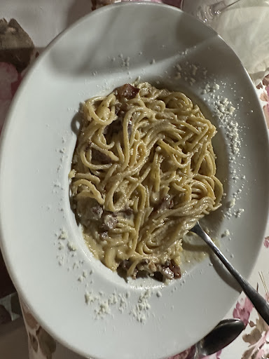 First things first, it is indeed a cute location with a nice, very quiet terrace in the middle of the city. Upon entering, you are pleasently surprised by the peace this location offers.But unfortunatelly, that's about all.The steak, the pasta and the fries were absolutely terrible.First, I ordered an entrecote, i asked the waiter to give me what she thaught it was the best beef entrecote they have, and to cook it medium.It arrived nearly burnt on the outside and raw on the inside.Plus, it was a low quality beef.Then I told myself i need to order something very easy to cook and i asked for pasta carbonara.Even a 6 year old could make them, but not this "chef". It is not visible in the photo, but that was NOT carbonara...the sauce tasted similar to quattro formaggi, to which they added some type of meat (hard to believe to be guanciale).I even asked a friend to taste it, he said the same...that is NOT carbonara.If the manager reads this, carbonara is pasta with egg yolk, parmezan and guanciale.Romanians do make it with cooking cream and bacon and that is fine, it's still tasty, but these weren't even made in the romanian style.It was a sort of pasta i've never seen in my life.The fries were barely cooked, probably the chef is always on the run, cooking with high temperature, whick makes the food cooked only on the outside and not cooked enough on the inside.The crostini and bruschette were average.The pizza diavola was good.The wine average.Probably for a pizza and a beer, this place is fit.But if you know a bit about food and you have some medium expectations, it's best to eat somewhere else. The service was also average, the parking is...