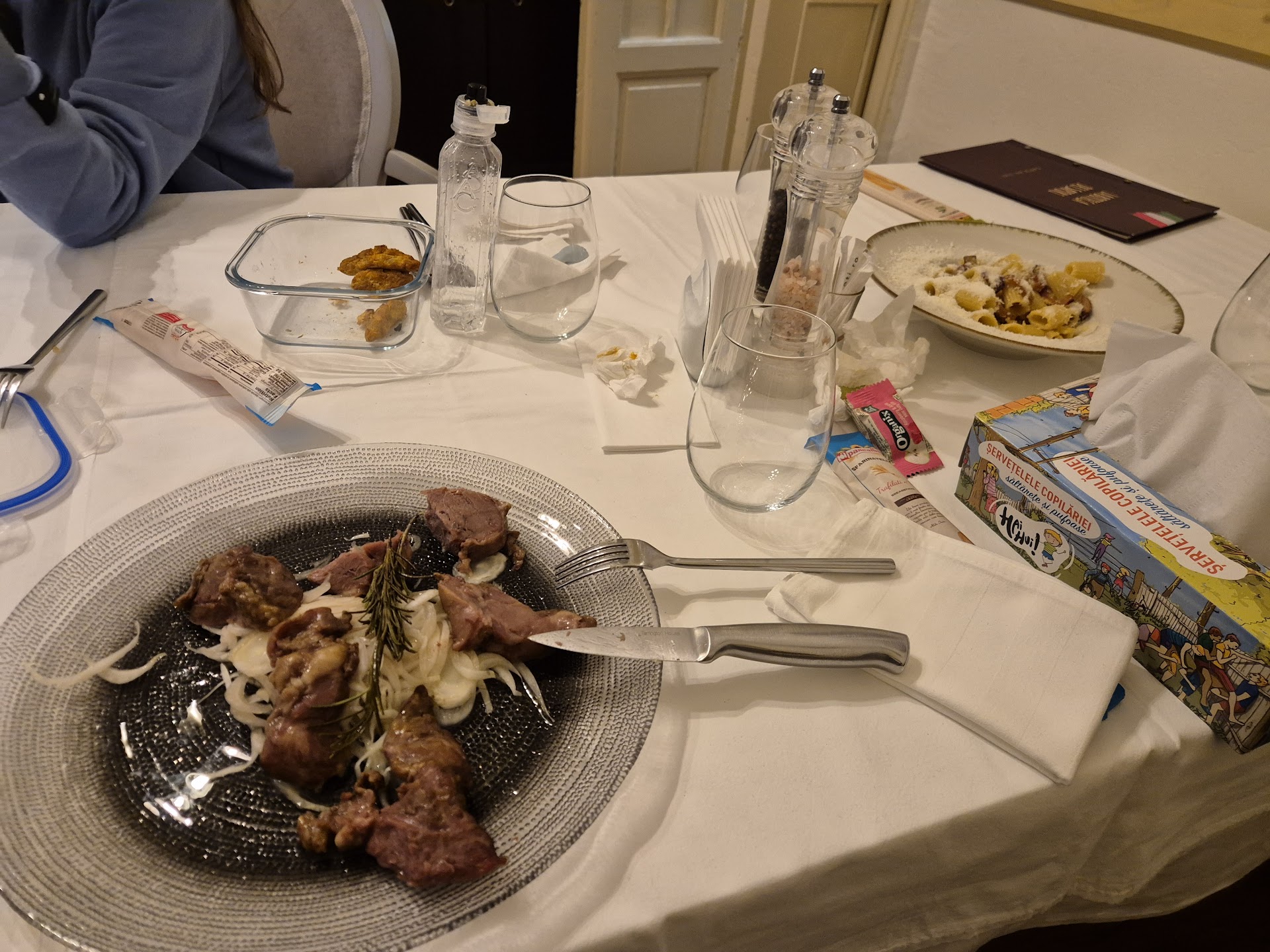 A doua chestie pe care am observat-o era că focaccia nu era focaccia și cumva am fost contraziși pe un ton răutăcios/pasiv-agresiv „Focaccia e în farfurie!” (Cumva că nu o vedeam)…Focaccia lor arăta a pâine lunguiață, cu puțin ulei de măsline și rozmarin, alte variante nu existau. Menționez că eram toți cu vârste peste 35 de ani, am mâncat în multe restaurante, inclusiv în Italia. Aia nu era focaccia, dar nu asta a fost problema principală.