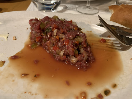 Read moreThis place supposed to be emblematic for romanian traditional food. We chose it for a group dinner, taking into consideration that we had some international guests. What a nightmare… the waitress was absolutely a disaster: she took wrong orders, she was slow as a snail, she knew nothing about the wine! However the wine list is so short that you make up your choice quite easily. Finally we chose the only Romanian bottled wine available. I’ve just asked if I can taste it - a normal demand in ALL correct restaurants all over the world, especially for a 30€ bottle.. She said that if she opens the bottle, we need to pay for it… What a “good image” about this restaurant. Luckily it was a quite good wine. Even if we needed to wait 30 min to provide us the wine glasses, finally we drank a couple of bottles as we needed to “replace the food”… speaking about the food… the order was taken after 1,5h of waiting… the main dish was served after 3h!!! The food was below average. My tartar was just awful! I love tartar, I eat it often, but I think it was one of the worst in my life — see the photo. Still thinking if the “red liquid” in my plate was the blood or the dressing. Even if it is raw meat, the tartar should not be floating in the blood..I want to live with the impression that it was just a bit “too much” dressing… I admit that the head of waiters tryed to take over the service as I flagged up the poor service. Unfortunately it was too late… our guests remained disappointed. What a loss…’cause the Romanian food should be a wonderful experience… and definitely it was not the case!...