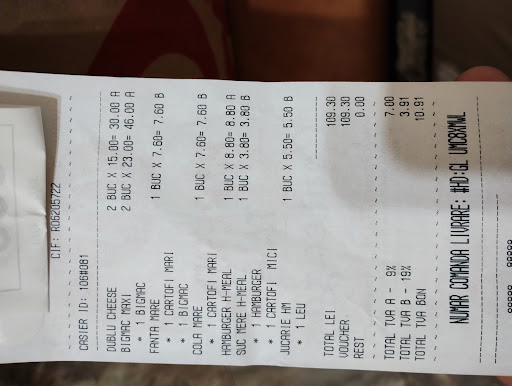 poor customer service. while i was placing my order on the self service terminal, an employee interrupted me with some promotional material, and even if i kindly requested this person to let me complete my payment process, she continued to disturb me with some more details and conditions i didn't even manage to understand from her. another time i placed an order and waited for 15 minutes just to realize that my order got lost somehow and it wasn't even processed in their system. almost every time the order display status placed above the cash register is out of sync and unreliable, when the status is ready someone literally whispers your order number and good luck hearing it if you are more than 2 meters away. the only thing that seems to work fine is when you choose to have your order delivered at your table. food is standard, maybe too much salt compared with other McDonald's...
