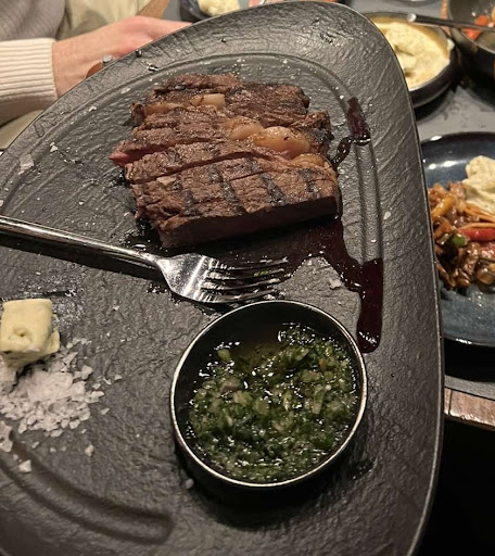 The food was just as impressive as the service. We started with Colțunași de vită and a fresh burrata with tomatoes and salad mix—both were beautifully presented and full of flavor. The star of the evening was the Tomahawk la robata maturat cu chimichurri—perfectly cooked, tender, and bursting with taste. The ribeye with chimichurri and crispy French fries were also delicious and made the meal complete. To top it all off, we enjoyed refreshing mojitos that paired perfectly with the food.