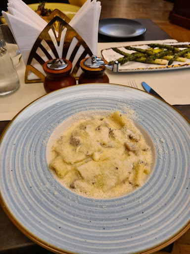 Old house where hospitality goes to die. The food was not impressive but what bothered me the most was the 1 star service all throughout the visit. I called days ahead asking for a reservation for the weekend, and specifically asked if they had a lot of reservations at lunch time, as I have an anniversary and I want a nice atmosphere, not an empty restaurant. I even mentioned I can switch to dinner if they believed it was a nicer atmosphere. The waiter absolutely assured me TWICE that they had loads of reservations at that time and that it was going to be nice. Fast forward to Saturday (my birthday anniversary), we arrive at the restaurant and surprise: it was completely empty because they had a private event that only started way later, and we were seated in a connected room, which looked nothing like the main restaurant (the beautiful decor that you can see everywhere online). My facial expression was incredibly visibly disappointed and almost crying, but the waiters had nothing to say, only “there is no other option” and “I don’t know what you were told on the phone”. By this point I was in shock by the staff’s careless attitude towards an unsatisfied customer. Also, no help from the staff in picking appetizers and ended up with a table full of avocado plates, because the waiter said the portions were very small and because the menu I had was missing the first pager or it was stuck to the cover. Anyway, we stayed, had lunch, dessert and multiple bottles of prosecco. The food was average at best, the staff was blunt the whole time, and the atmosphere was dead. Before leaving, we stopped for 5 minutes at the entry and made some jokes trying to lighten the mood. Another very unpleasant member of the staff approached us and very rudely asked what we were doing. Terrible experience. Do not recommend. There are hundreds of better places in Bucharest with excellent italian food that you can visit, not this old house where hospitality...