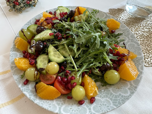 We got their Toka salad (definitely the best item we ordered), fries (probably the worst homemade fries we’ve had), the chicken with the rose sauce (edible but dry) and the pancake (kinda bland). Their albanian pies are only available for pre-order, apparently, at least that’s what the waiter told us (2 people). Another bigger group asked about them, they were told it takes about 50 minutes to make them, but the waiter still seemed very reluctant to accept an order of the pies.