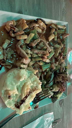 We ordered a pizza to share so it was edible. Just like a pre-prepared frozen one you get at the supermarket. Our friends however ordered the risotto and the Piept De Pui a la Riccio cu piure and described as Piet De Pui, Dovlecel, Vin, Sweet Chili, Usturo, Ghimber. The risotto was barely edible and the Piept De Pui a la Riccio was to be totally honest inedable. There was nothing that resembled sweet chilli, and the chicken was either left out or unrecognisable. We akso oredered the house white wine which was delivered nit chilled. When we asked why the wine was warm we were told it came in a big container and they didnt have enough room in the fridge to chill it. The staff gave thd impression there was nothing they could do but they did remove the chicken a la Riccio from the bill at least. I would nog recommend going here to eat however. The prices are also outrageously high...