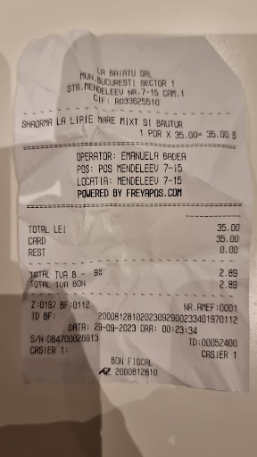 Read moreI went to this place as it has quick and usually good food. Today it was one of the worst if not the worst food related experiences. I ordered the big size shaorma, only to receive only a couple of pieces of meat. I didn't notice until my friend who ordered the smallest one had a more "friendly" size. Bigger was an understatement. The server heard me and asked if we should weigh the meat. I said sure go ahead. At 45 g on the scale he quit and threw the shaorma screaming : " this is how you are! you Romanians!". I just said ok. I'm going out, with him screaming and cussing all over. Ordered a bolt only to have the same guy open the door of my bolt after I got on. I don't care if he wanted to apologize. He made things worse. The owner has the cameras and he can check how things...